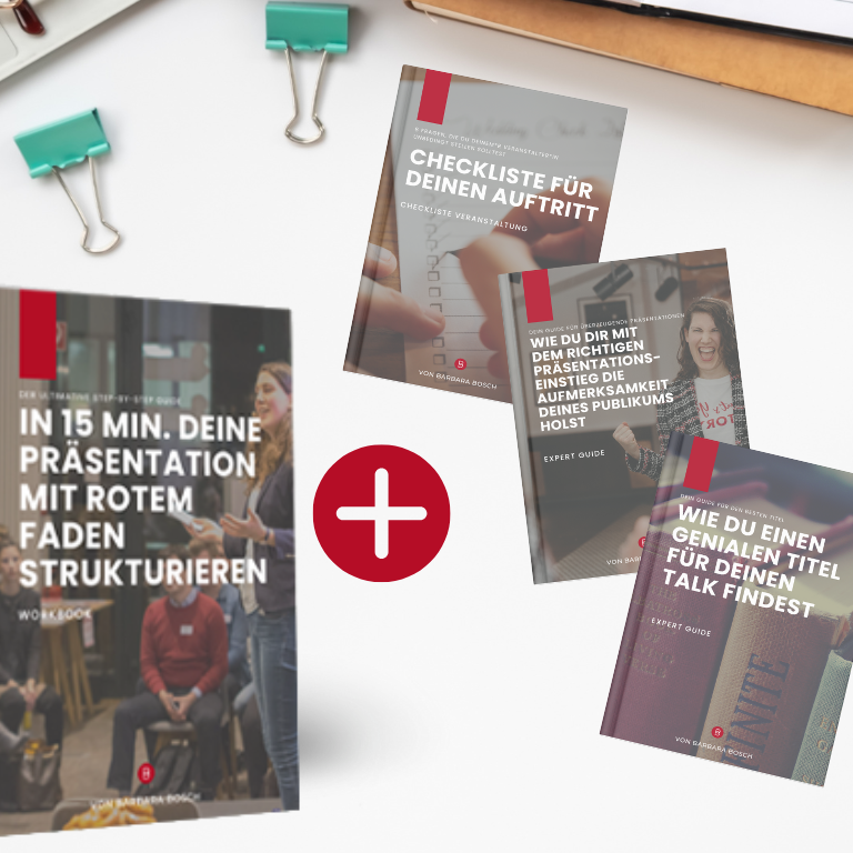 Digitales Workbook / Step-by-Step Guide "In 15 min. Deine Präsentation mit rotem Faden strukturieren" + 3 Expert Guides (PDFs)